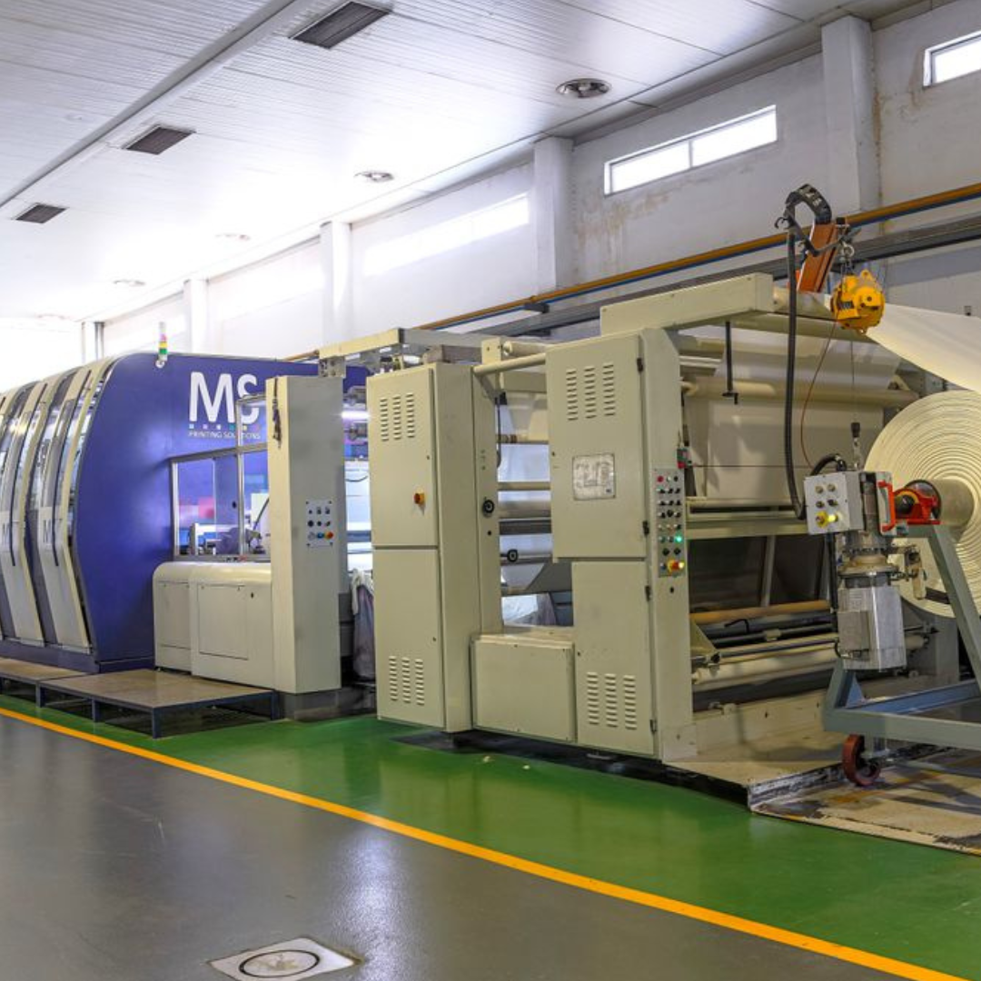 Realizamos el proceso de estampado en máquinas con tecnología de última generación como MS Lario con velocidades de 75 mt/min y hasta combinaciones de 12 colores. La maquinaria que utilizamos nos permite estampar hasta en telas de 3.20 mts de ancho logrando satisfacer las necesidades más exigentes del mercado.